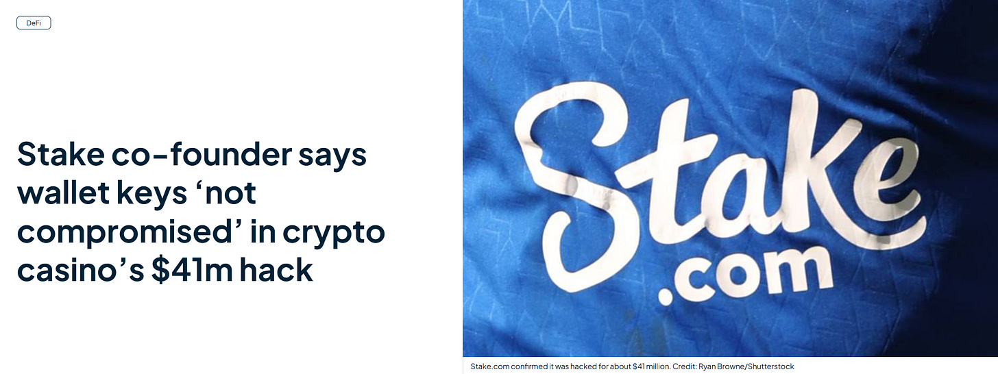In today's edition, we're featuring a tweetstorm about the VISA/Solana announcement, and an article covering Stake.com’s 41m hack from yesterday, with some words from the CEO.