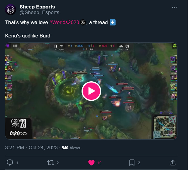 LoL insider LEC_Wooloo has launched Sheep_Esports, a new media platform. They've just published a thread highlighting some of the most breathtaking plays from the tournament so far. While I might not be the biggest fan of playing LoL, I can’t hide my admiration for the game, lore, esports, music, and their whole strategy. Long live LoL.
