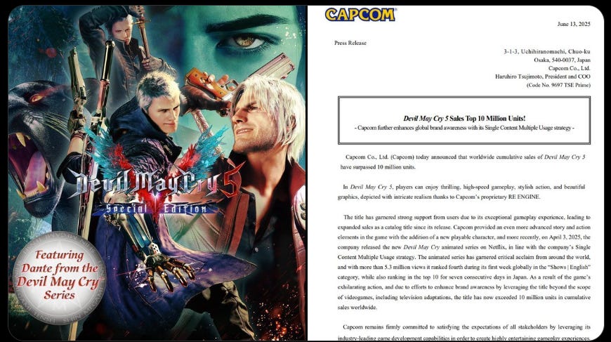 Devil May Cry 5 has sold over 10 million units. Wario64 Twitter