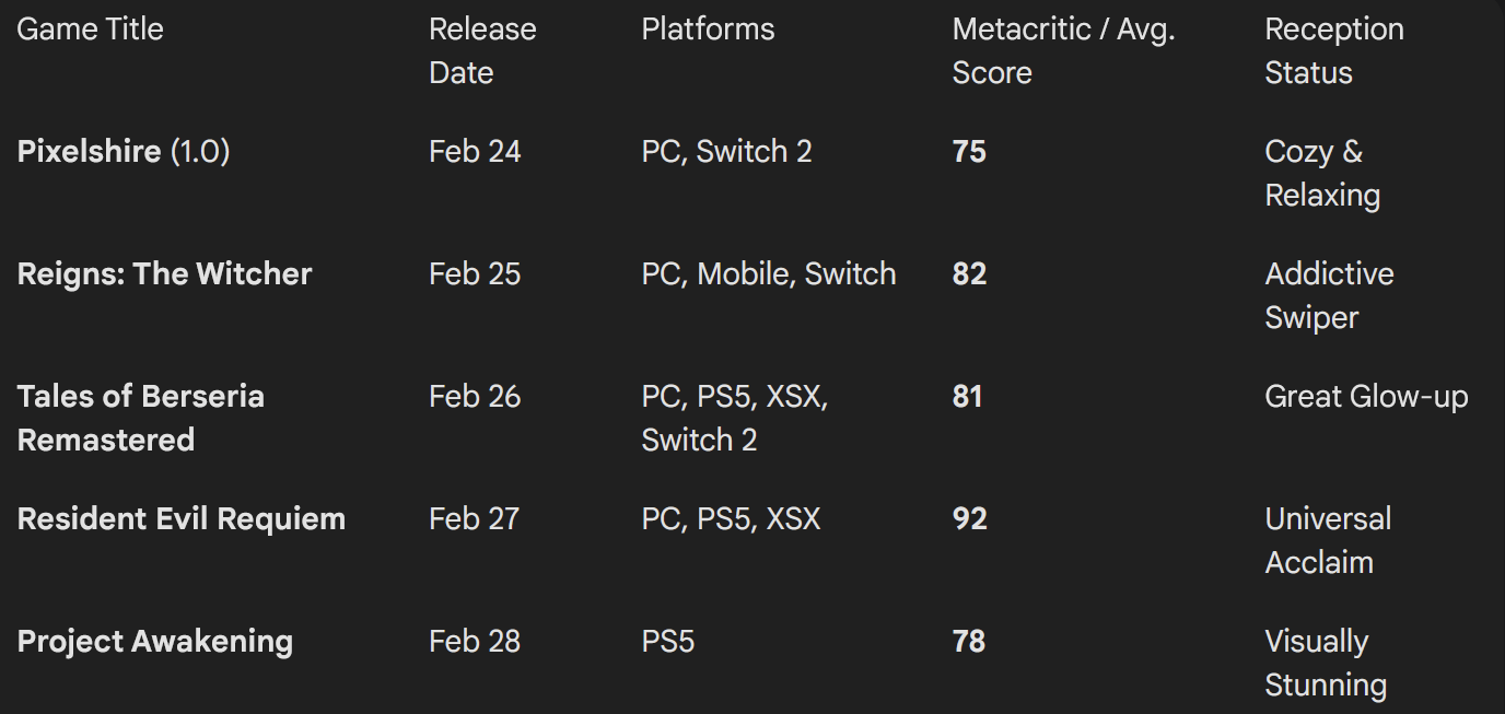 Resident Evil Requiem peaked at 267,509 concurrent Steam players, breaking the series record over the previous 168,191 set by the Resident Evil 4 remake. (IGN)